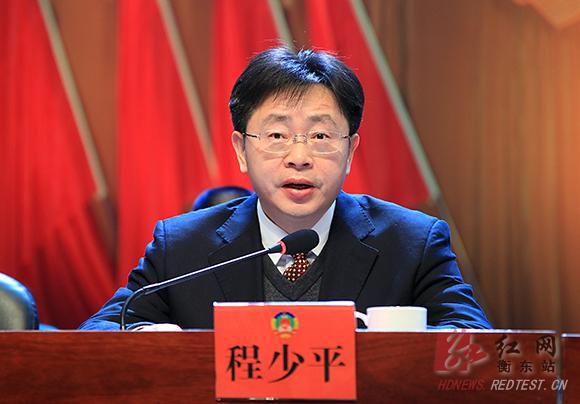 图:县委书记程少平在会上讲话。