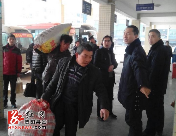衡阳县汽车站工作人员正在站台引导旅客乘车 图/欧阳天宇