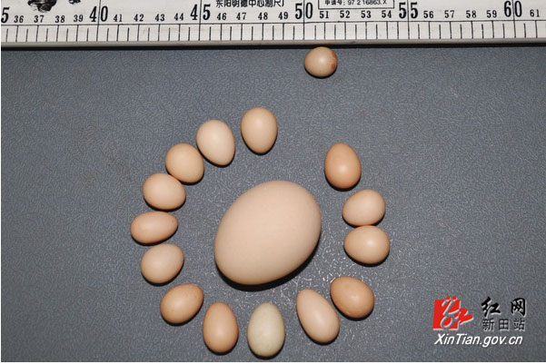 红网新田站1月20日讯(分站记者 唐人杰)比一元硬币还要小得多,最小的一个长约1.65厘米、直径约1.44厘米。如果说这是一个鸡蛋,你相信吗?1月17日,记者在新田市民刘先生家就见到了这样的鸡蛋,15个鸡蛋个个堪比吉尼斯世界纪录。