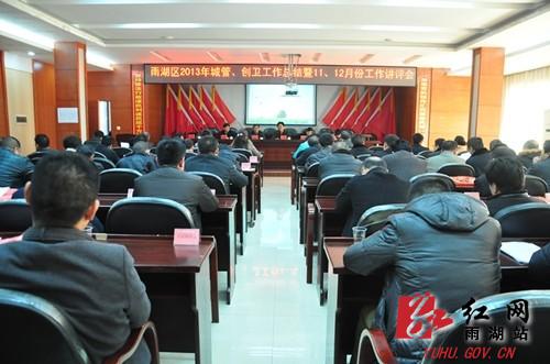 会上,袁典凡作了《推动“四化一统筹” 建设美丽宜居雨湖》的讲话,并分析了当前城管工作存在的问题,部署了下阶段的城管工作;章果宣读了2013年以及11、12月份城管、创卫工作考核结果通报;区城管办负责人对2013年以及11、12月份城市管理工作进行了讲评,区创卫办负责人对2013年以及11、12月份创卫工作进行了讲评,区城管局负责人对2013年以及11、12月份拆违控违工作进行了讲评。