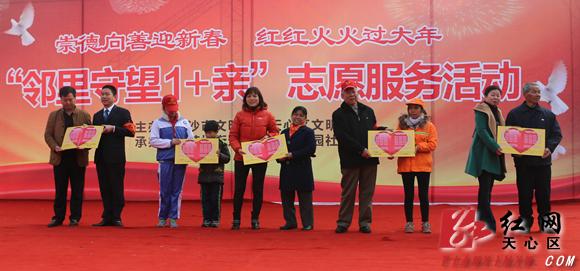 活动上,天心区各级文明单位向社区空巢老人、残疾人、环卫工人、农民工以及留守儿童现场赠送了慰问物资,为他们送去了寒冬里的丝丝温暖。5支特色邻里守望志愿服务队与服务对象们交换了“邻里守望服务卡”,用行动承诺与邻为德、与邻结友、与邻同乐的决心。
