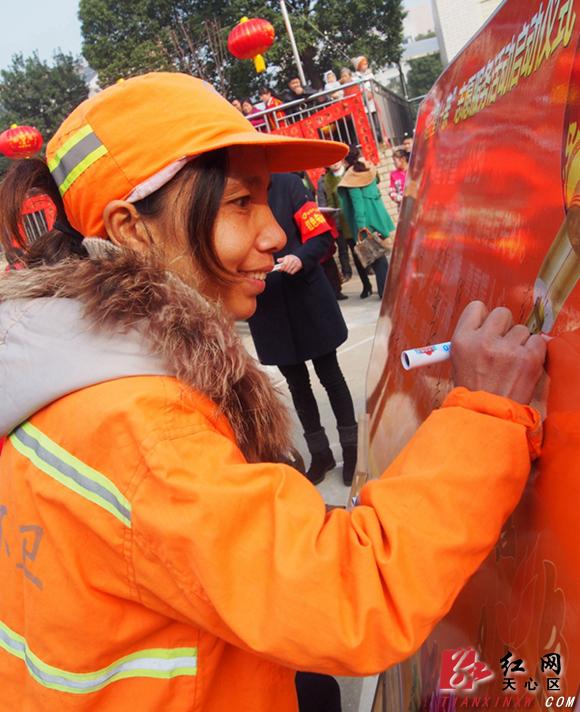 50多个大红灯笼围绕着的社区广场上,居民纷纷署下姓名,许下承诺,恪守公约,和谐邻里。