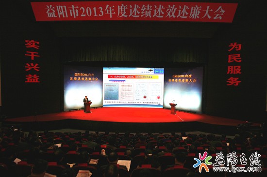 红网益阳站1月21日讯(分站记者 高瞻)1月20日下午,益阳市2013年度述绩述效述廉大会在益阳大剧院召开,66个区县(市)党委、政府和市直单位的负责人集中述绩述效述廉。在家的四大家领导现场听取汇报。