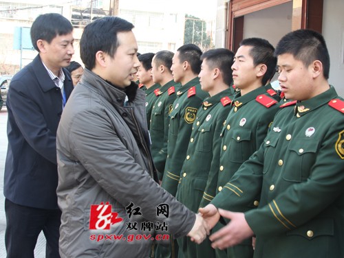 红网双牌站1月22日讯(通讯员 唐娟) 1月22日下午,双牌县委书记苏小康,县委副书记、县长魏和胜一行带着对驻双部队的深切关怀,走访慰问县人武部、武警中队、消防大队的官兵,向他们致以节日的问候,并送上了慰问金。宋振平、吴国政、陈丽、秦小国、邓洪、夏红兵、付康成、周华等领导参加走访慰问。