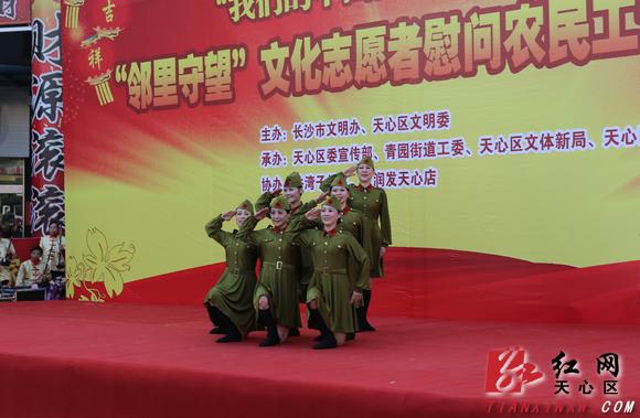 据悉,这是天心区委、区政府认真贯彻党的十八大和十八届三中全会精神,以高度的责任感和使命感,扎实开展“邻里守望”志愿服务,抓重点结合,精心部署组织2014年元旦春节期间“我们的中国梦”文化进万家活动,此次文化志愿者慰问农民工专场演出旨在营造切实尊重、关心和爱护农民工的浓厚氛围,丰富农民工节日文化生活,让我区农民工兄弟姐妹过一个热闹、温馨、祥和的春节。