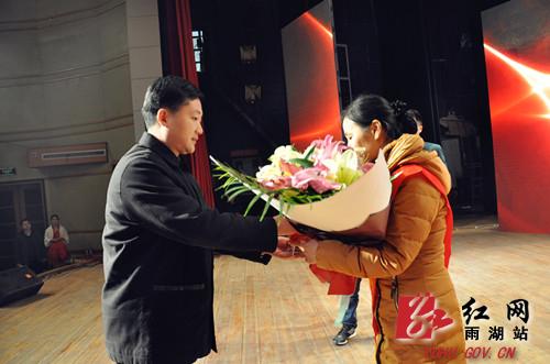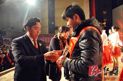 红网雨湖站1月23日讯(分站记者 陈娟)1月22日,“最美雨湖人”步步高杯2013年度(首届)颁奖典礼隆重举行。湘潭市委常委、宣传部部长蒋锋,雨湖区委书记刘永珍,区委副书记、区长何锋,步步高集团总裁陈志强,区委副书记陈爱民,区人大常委会主任罗扬义,区政协主席曾彩奕,市委宣传部副部长、市文明办主任罗玲玲为8名“最美雨湖人”颁奖。