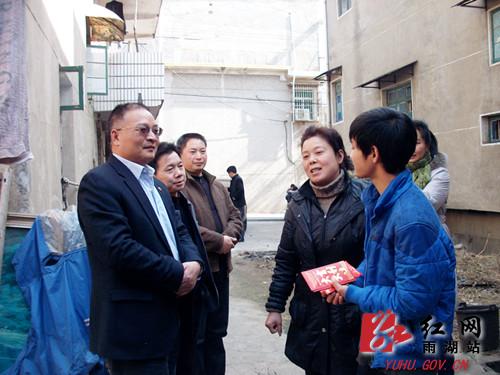 红网雨湖站1月23日讯(通讯员 陈可斌)元月21日,雨湖区长城乡砂子村村民舒迪虹第二次迎来了一位特殊爱心使者,他就是现任湘潭市副市长陈小山。陈小山曾承诺每年资助3000元给舒迪虹的儿子上高中,3年的承诺,今日是“兑现”第二次了。与此同时,雨湖区教育局也是第二次送来了3000元慰问金。