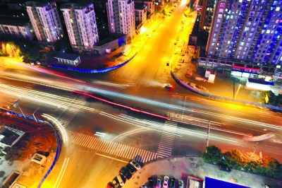 (1月22日晚,长沙市人民东路与古曲路交会处,路面上的围挡已放开,交通恢复。 记者 田超 摄)