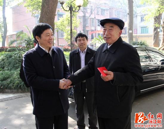 邓宗祥还看望慰问了江桂生、刘志辉等劳动模范。今年已80岁高龄的江桂生老人,担任了多年的沅江市人民检察院检察长,因工作突出,多次受到省人民政府表彰,荣获省级荣誉。在与他交谈中,看到老人身体硬朗、精神矍铄,邓宗祥非常高兴,对他拼搏进取,忘我工作,无私奉献所取得的业绩表示肯定,感谢他为沅江经济发展、社会进步做出的重要贡献,叮嘱老人要注意保重身体,并祝他家庭幸福,健康长寿、新春愉快。