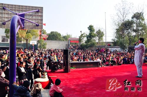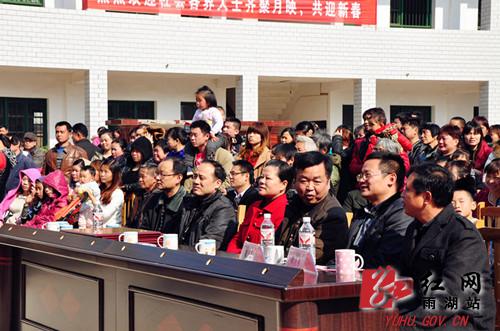 红网雨湖站1月26日讯(分站记者 谭琴)过大年看央视春晚,似乎成了百姓不可或缺的重要环节。1月24日,姜畲镇月映村组织村民们自发办起了“有史以来”第一场乡村春节联欢会,歌曲、相声、快板、舞蹈、武术表演等一应俱全,让附近村民在春节前过足了瘾。联点领导、雨湖区委书记刘永珍和现场观众千余人欢聚一堂庆新春。