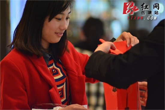 红网岳塘站1月26日讯(分站实习记者 彭婷 摄影 黄滔)“文明盛世飞春色 锦绣前程亮马蹄”……一幅幅春联写出一段段新春祝福。1月25日下午,湘潭市岳塘区委宣传部携手区文明办、区文体广新局、区文联,在华隆步步高举办“万幅春联送万家”第三站活动。这也是岳塘区在“三下乡”“六进社区”活动启动以来,再次启动的2014年“我们的中国梦·文化进万家”大型活动的子活动之一。