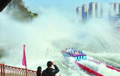 时刻新闻 —分享— 1月24日上午,长沙世界之窗,第一批游客乘坐漂流船,体验从28米高空以70公里时速乘风破浪的惊险。当日,该园耗资2000万元引进的高空速降游乐设备“飞舟冲浪”正式与游客见面。本报记者 田超 摄 来源:湖南日报 编辑:王娉娉