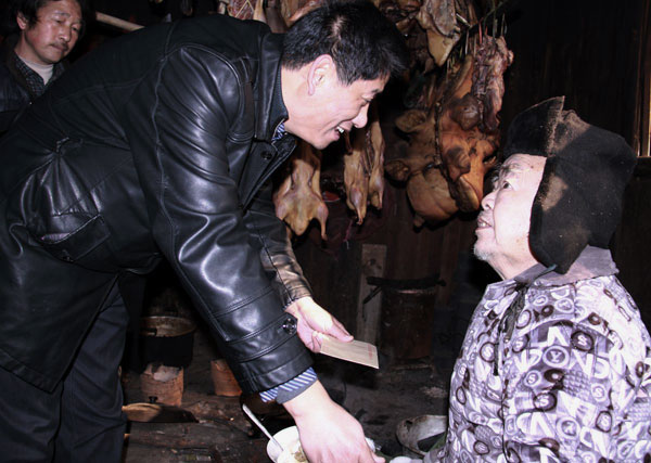 老党员陈治江瘫痪在家,腿脚行走不方便,副县级干部、县政府督学瞿东升上门看望时,他正窝在火炕边艰难地吃午饭,虽然没有答谢言语,但看得出接过慰问金那一瞬,他眼里充满感激。