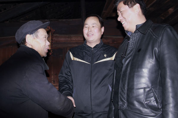 村干部老陈的家住乡集镇偏坡上,他没想到年关时节,县委宣传部、教育局、民政局、移民局和乡里干部上门来看望自己,对于这份特殊关心,他感觉自己干一辈子村干部值得---虽然从工作岗位上退下来了,但党和政府没有忘记自己!