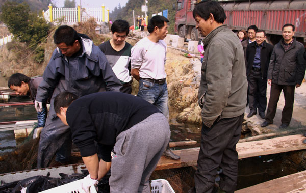 今年库区网箱鱼依然难卖,价格不好,养鱼亏钱。听说这两天有重庆老板进乡调鱼,慰问群众之余,罗宏忠执意来到陈家滩乡集镇鱼码头,了解销售状况,听取渔民诉苦,会商卖难办法。