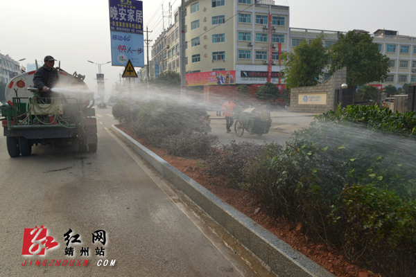 园林局工人给花草洗澡,环卫工人清扫街道迎新年 龙本亮 摄影
