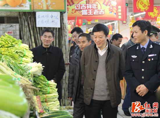 在蔬菜摊前,邓宗祥提醒负责人一定要保证供应和质量