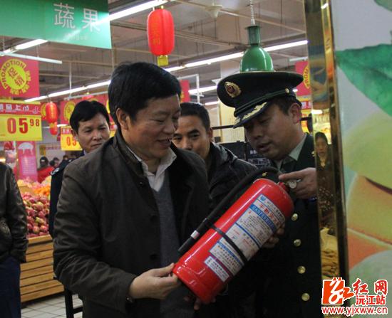 邓宗祥向陪同的消防武警干部详细了解超市的消防器材准备以及设施的使用情况,要求消防部门多与超市联系,加强消防监督,确保超市消防安全。同时叮嘱市商务部门在节日期间要保障充足的货物,保障物价稳定,不得随意涨价;要保障服务,让前来购物的居民有一个舒心的环境;要注意安全,尤其是消防安全,让广大市民度过一个喜庆祥和的新春佳节。