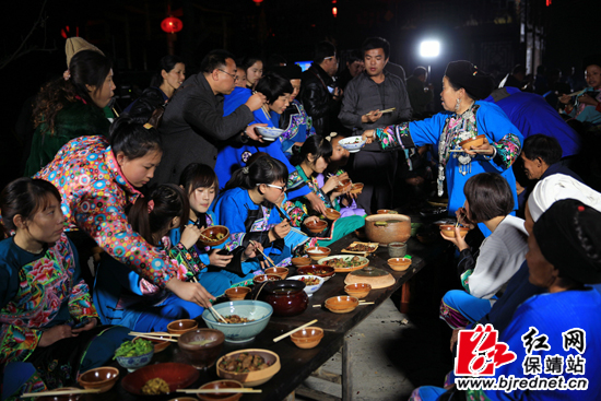 夜幕降临,“百家宴”开吃,村民们津津有味的品尝着各家的菜肴。