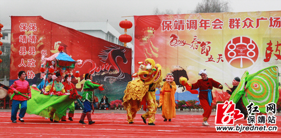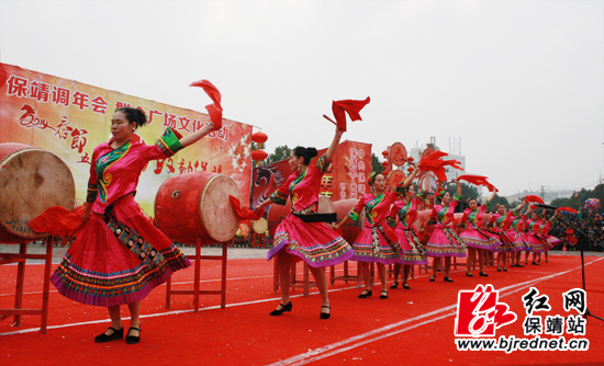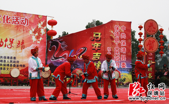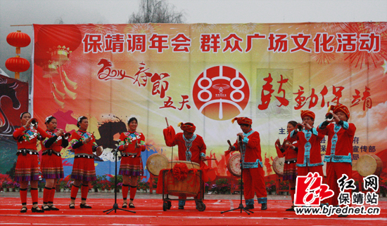 天福文艺演唱队的民族传统表演《喜迎新春》拉开活动序幕,锣鼓声中,肥头大耳的“罗汉”一边逗狮一边向群众拜年,蚌壳灯时开时合,彩龙船轻盈飘荡,两个“罗汉”更是憨态可掬,一步三摇晃。接下来,喜洋洋艺术团表演的打溜子《四进门》、花井苗鼓队表演的《八合鼓》、桐木棋乐队《迎宾鼓》、艺乐培训基地的架子鼓、东方龙军鼓队的军鼓、民间山歌艺术团的打溜子《小纺车》和《八哥洗澡》、县直苗鼓队的《撼山鼓》、酉水民乐队的打溜子《鸡婆下蛋》、迁陵镇苗鼓队的《喜庆鼓》和《采茶鼓》、碗米坡镇陇木洞村土家后生的《土家溜子》、飞扬健身队的苗鼓等精彩的节目轮番上演,多个节目中,还穿插着响亮的唢呐独奏。观众们看得全神贯注,听得如醉如痴。