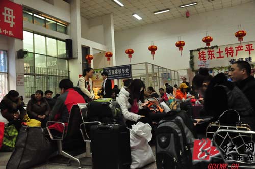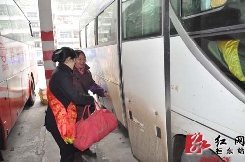 “不论是一名旅客还是一万人次旅客,我们都倾心服务。”郴汽集团桂东分公司负责人表示。春节期间,该公司工作人员由平时的“两班倒”变为“上全班”, 全体坚守一线。通过增开售票窗口、延长售票时间等方式加大预售票量,通过短线补中线、中线补长线、从外县市调配补充车辆等方式全力发送旅客。此外,加强安全管理,参运车辆均安装GPS定位系统进行实时监控,带“病”车辆一律禁止参与客运,车站严格实行“三品”检查,依法严厉打击站外揽客、甩客倒客等违法违规行为。此外,实行服务首问制,开展了“情满旅途”优质服务活动,平日负责财务等后勤工作人员调往一线参与客车检票、咨询等服务工作,对老、弱、病、残旅客提供帮助,为过往旅客提供温馨、优质的服务。