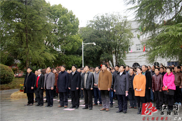 在县委大院内,伴随着雄壮的国歌声,鲜艳的五星红旗冉冉升起,县委、县人大、县政协全体干部表情庄重,面向国旗肃然而立行注目礼,共同祝愿我们伟大的祖国更加繁荣昌盛,茶陵的明天更加美好。