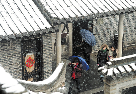 新春的第一场雪并没影响游客们的兴致,在贾谊故居,一些游客正在参观。