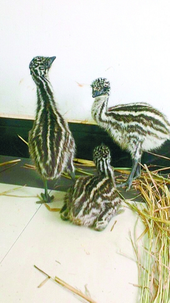 “新孵化出来的鸸鹋很活跃,大约25cm高,身上有棕黄色的条纹,十分惹人喜欢。它们现在主要以苜蓿草、菜叶为主食。”动物园饲养员介绍,因为刚出生再加上天气寒冷,3只鸸鹋宝宝现在都待在动物园暖房内,待身体强壮后才能与市民见面。