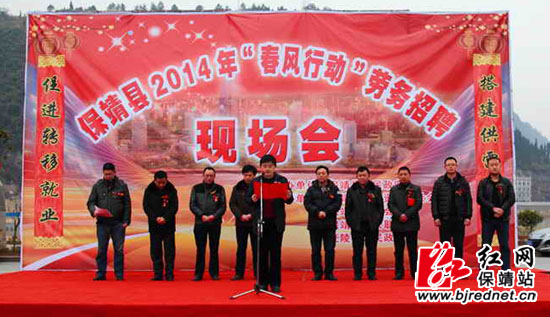 红网保靖站2月13日讯(分站记者 彭运生 刘玲)“保靖县2014年‘春风行动’劳务招聘现场会正式开始!”2月12日上午9时许,在保靖县城沿江大道广场,保靖县委常委、常务副县长向安生宣布道。当天,保靖县2014年“春风行动”劳务招聘现场会隆重举行。招聘会现场人头攒动,每家企业招聘点前都围满了登记、咨询的应聘人员,招聘会盛况空前。