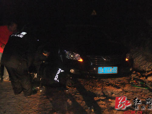 红网桂东站2月13日讯(通讯员 温少波 张毅)2月9日晚,桂东县境内已穿上了一身厚厚的“白衣”。 20点左右,交警大队民警突然接到报警求助电话,一小车在我县S352线桥头乡荷树坳路段因路面结冰,无法行驶被困,车上人员饥寒交迫,情况危急。