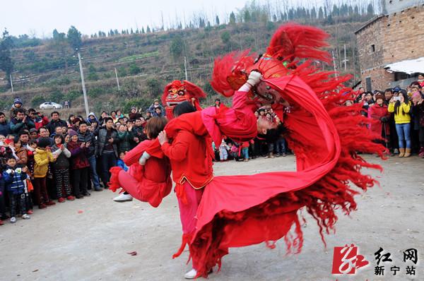 红网新宁站2月14日讯(分站记者 杨坚 郑慧)2月14日上午,正值一年一度元宵佳节,新宁县水庙镇高坪村锣鼓喧天,龙腾狮跃,热闹非凡。这是2014年“龙腾狮跃闹元宵”全国龙狮大联动走进新农村活动的现场。