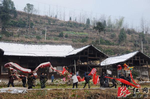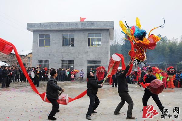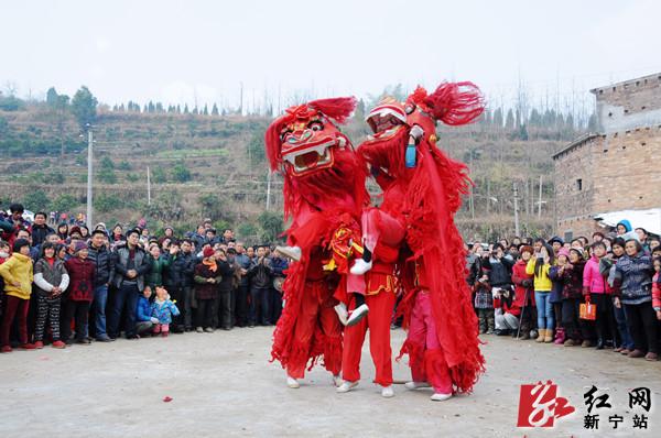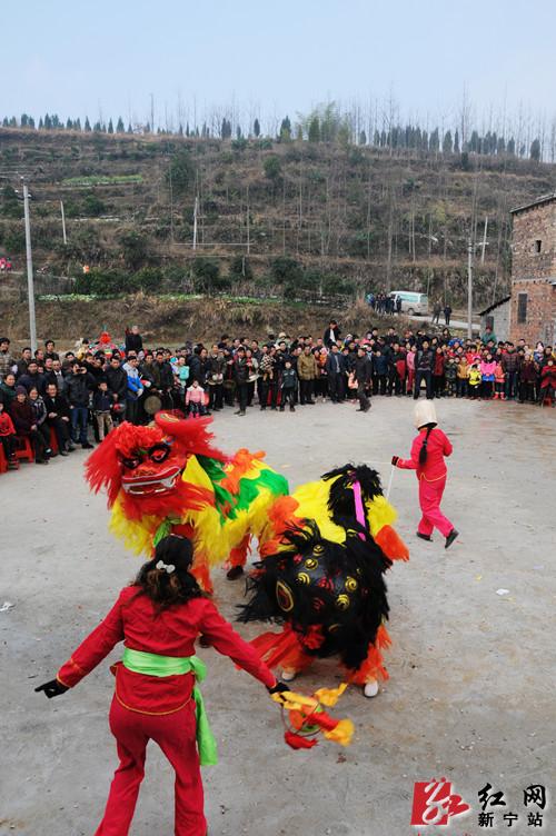 红网新宁站2月14日讯(分站记者 杨坚 郑慧)2月14日上午,正值一年一度元宵佳节,新宁县水庙镇高坪村锣鼓喧天,龙腾狮跃,热闹非凡。这是2014年“龙腾狮跃闹元宵”全国龙狮大联动走进新农村活动的现场。