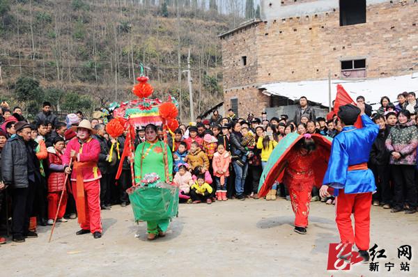 活动当天,来自该县20多个村的龙狮队参加了表演。龙狮队的精采表演,充分展示了新农村老百姓们的精神风貌。其中高坪村的舞狮表演,以腾飞、狂舞、登顶等高难度的动作赢得了现场群众们的阵阵掌声和欢呼声。当地村民还表演了富有民族特色的彩调剧《双怕妻》、《晒秀鞋》等节目。