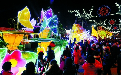2月14日晚,众多市民在长沙梅溪湖畔赏灯游园。本报记者 徐行 摄