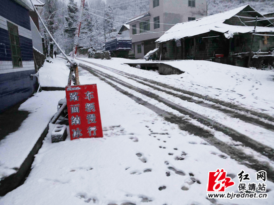 红网保靖站2月19日讯(通讯员 姚锐)2月18日,保靖县野竹坪镇大雪纷飞,冰雪覆盖了全村各条道路,加上路面结冰,可见度范围很小,严重影响道路交通安全通行。