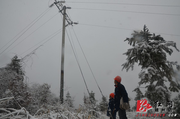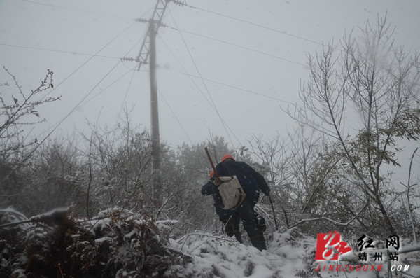 靖州电力公司人员冒雪前行 陈俊名 摄