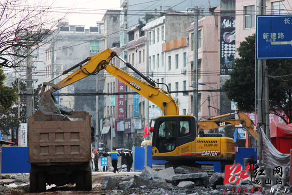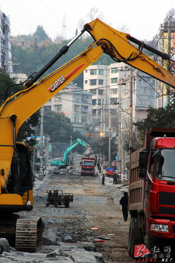 红网龙山站2月20日讯(分站记者 梁涛)2月20日,在龙山县老城区市政道路改造的209国道城区段和回龙路段施工工地上,机器轰鸣,一派火热的施工场景。
