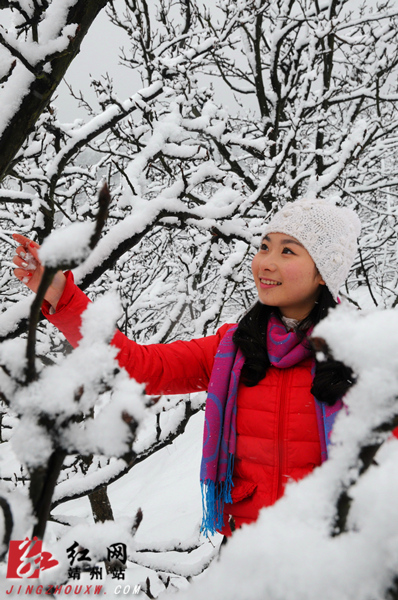 赏雪的人陆续赶来,树影林间早已摆好一排“长枪短炮”,一个个身着红妆素裹的曼妙身姿款款而出。踩着沙沙的白雪,挥舞着鲜红的围巾,任凭那照相机咔嚓、咔嚓地闪着,只听到一声声由衷的称赞:“树美,雪美,人更美”!