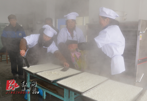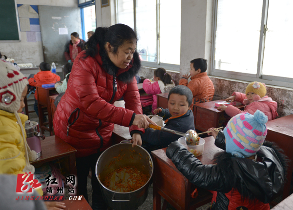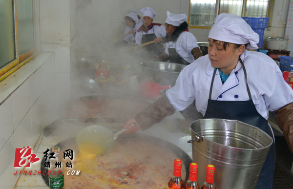 红网靖州站2月20日讯(通讯员 陆益秀)2月18日,是新学期上课的第一天。靖州飞山小学一至六年级的2799名学生,加上学前班及为学生营养餐服务的师生3000余人,在学校吃到了热腾腾的营养中餐。这是该校一改往年由营养餐配送公司的一瓶牛奶、一个鸡蛋的配送方式,食堂有计划地为学生按两菜一汤的标准来烹饪中餐。为办好食堂,学校精心组织,全体教师放弃中午休息时间,到各班级组织学生就餐。