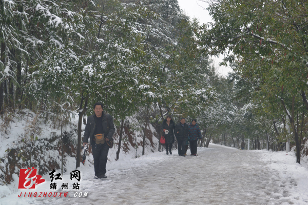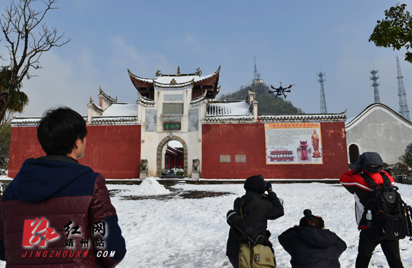 红网靖州站2月20日讯(分站记者 龙本亮) 2月19日,雪后初晴,飞山景区婀娜多姿,再次迎来客流高峰。在靖州飞山景区方广寺广场前,一名航拍高手及几名摄影人在拍摄雪中飞山胜景,在三宝鼎,雪花冰凌挂满树枝,显得分外妖娆。游客或步行、或乘车,呼朋唤友,一览雪中飞山胜景。