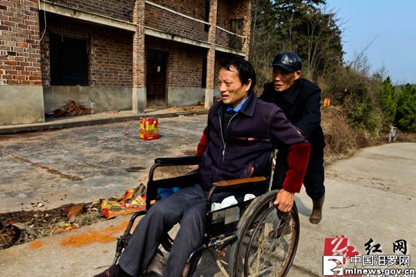 说起自己的遭遇,龙中良已经十分平静。那年,他30岁,还有1个月即将结婚。当时,他在上海一建筑工地上做小工,盖房子的时候不小心从6楼摔下来,人事不知。在上海花费了3万多医药费后,下半身完全瘫痪的龙中良回到了汨罗。身体受损,婚事也告吹。由于瘫痪,他的双腿肌肉严重萎缩,如同五六岁小孩的腿一样粗细。虽然下半身没有痛感,但是因为长期卧床,静脉不通,20年来,疼痛无时不刻不在折磨他。