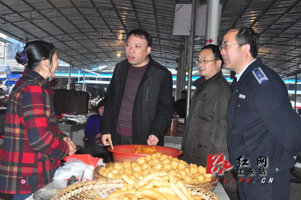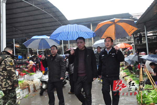 红网江永站2月25日讯(分站记者 任泽旺)2月25日上午,县委常委、副县长、统战部长秦远林带领市管、城管部门负责人,深入城北、瑶城农贸市场调研新市场经营、老市场封闭状况。秦远林察看了新老市场现状,与经营户交谈,了解群众所需所想。