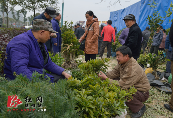 红网靖州站2月26日讯(分站记者 龙本亮 通讯员 吴号)2月25日,在靖州苗木市场,前来选购苗木的市民和客商络绎不绝,交易火爆。连日的雨水天为树苗的移栽创造了条件,市民抓好有利时机,选购树苗,绿化荒山,发展庭院经济。