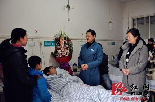 刘永珍慰问病床上的“最美雨湖人”杨柳