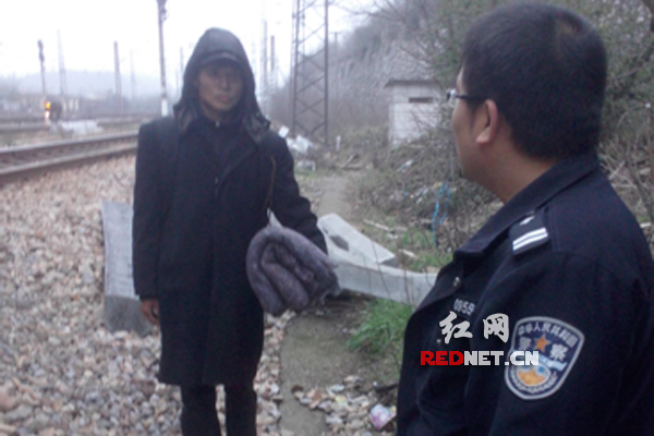 民警立即向该男子喊话,要他下来。男子僵持在铁塔腰部。经过半个小时的反复劝说,中年男子才慢慢爬下来。民警询问得知,中年男子叫周某(45岁,湖北省蕲春县狮子镇吴档村人),年后到广州某厂讨要被拖欠一年的工资未果,所带财物又被偷,身无分文四处流浪来到衡阳。万念俱灰的他打算爬到铁塔上跳下轻生。民警耐心对他进行思想开导,买来食物送他,几位值勤的铁路民警还一起给他资助200多元路费,送他到衡阳火车站踏上回家的列车。