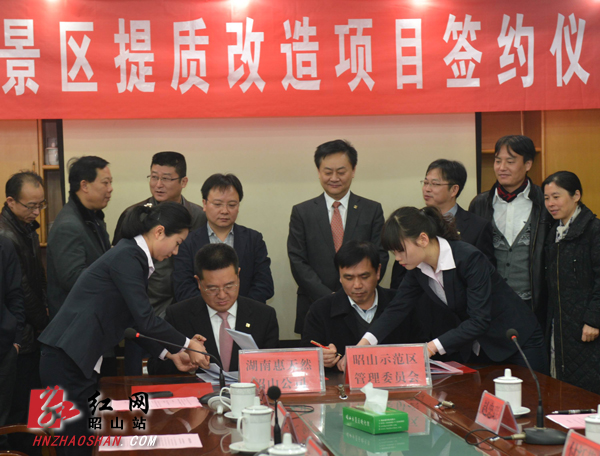 昭山示范区党工委副书记、管委会主任成秋兴和上海惠天然投资控股集团有限公司副董事长胡斌代表双方签约。这标志着昭山景区提质改造项目进入正式启动阶段。