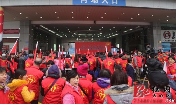 随后,城南路街道“邻里守望、善福e家”学雷锋志愿服务联盟第一次活动暨“‘大爱城南人、温暖好人心’爱心赶集”活动在现场同步开展,活动由城南路街道携手湖南妈妈网、黄兴小学、幼幼小学等单位共同举行,为身患重病的,43年坚持如一日的“金牌义工”常振伟爱心义卖、募集医疗费,回馈社会的温暖。“爱心赶集”现场,人头攒动、热闹非凡,妈妈带着孩子、老人牵着孙子将自家八、九成新的书籍、玩具、文具、衣物拿到爱心集市上来义卖,吸引了辖区单位、在职党员、综管队员和居民群众上千人的爱心关注和积极参与,一个多小时的时间里,爱心集市的义卖收入加上辖区企业和居民的捐款达到3.9万多元,这笔钱将全部作为常振伟的医疗费用。