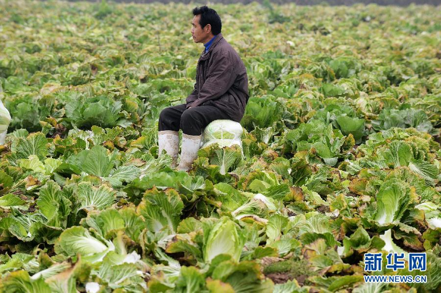 近日,湖南“汨罗三千亩白菜滞销,1.5万吨求收购”的消息引发关注。据了解,磊石乡大白菜种植面积为8000亩左右,主要销往广东、福建、重庆等省外市场。今年到目前为止约2500亩白菜没有收完,出现较为严重的滞销现象。当地的菜农认为,“白菜没人要”的主要原因是前期气温偏高,时令菜大量上市,造成白菜市场供过于求、价格大幅下跌。2013年当地的收购价格为每斤1角5分至1角6分,而今年每斤只能卖到7、8分钱。目前,当地政府正积极拓宽销售渠道,同时,针对该乡单一品种的现状,今年计划调整产业结构,丰富种植品种,增加农民收入。新华社记者龙弘涛摄