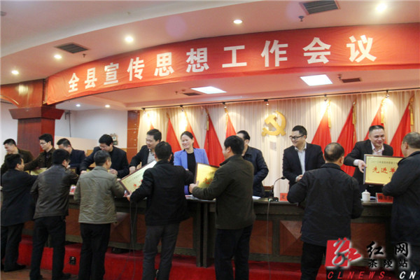 会议传达贯彻了全国、省、市宣传部长会议精神,总结了2013年工作,安排部署了2014年全县宣传思想工作任务,并对2013年度宣传思想工作先进单位和先进个人、精神文明创建工作先进单位和先进个人予以表彰。