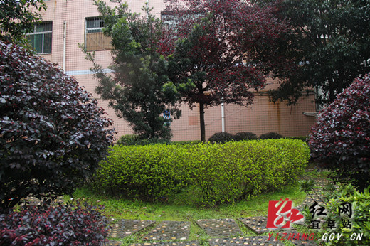 图为小游园内郁郁葱葱